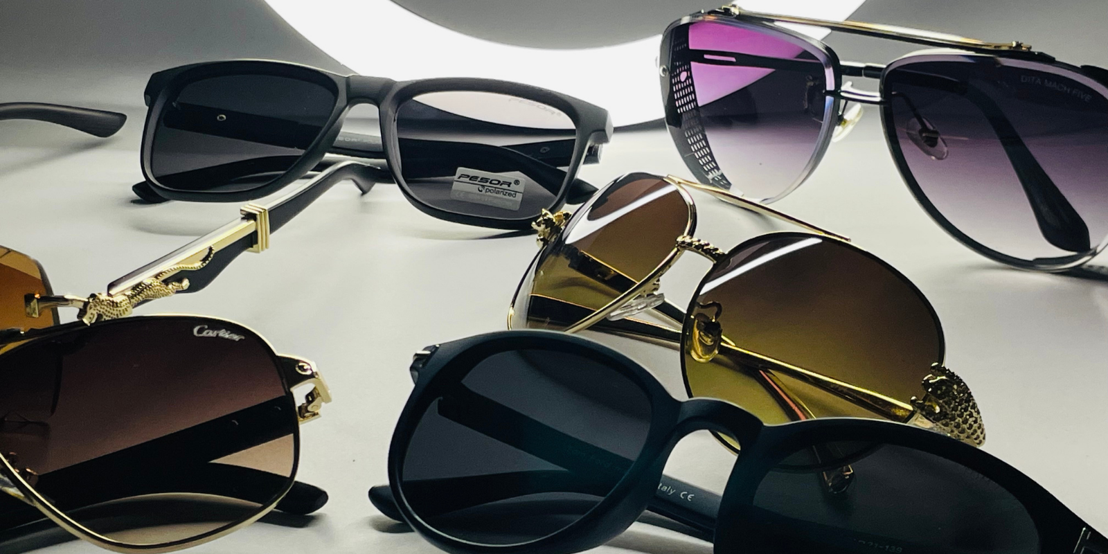 Three piece Cartier sunglasses – with golden Frame and pink Gradient Lenses.